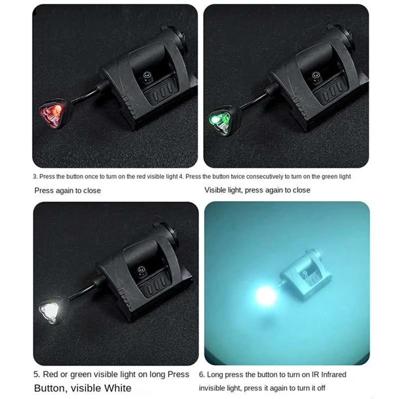 Durable and Long-lasting: The tactical helmet light is crafted from high-strength materials, guaranteeing its durability and ability to withstand rigorous conditions. Its robust construction ensures it can endure extended use without compromising functionality. Additionally, the presence of large rubber buttons makes it convenient and easy to operate.